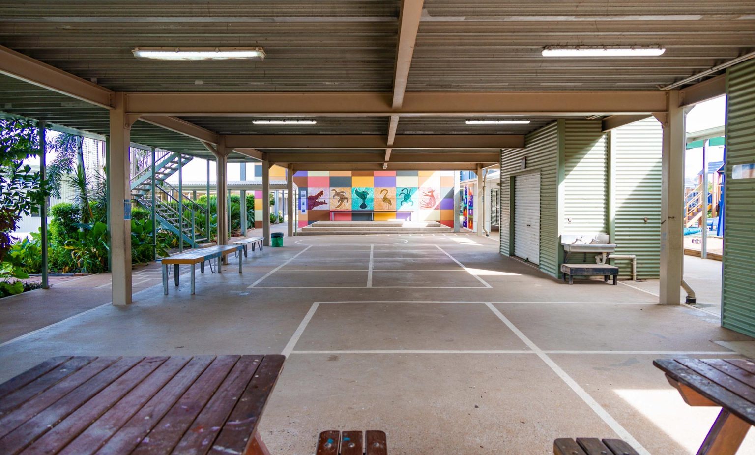 Recognising the important role sport plays in education, we have developed a purpose-built sporting facility – the Fred Edwards Sporting Facility to enhance the sporting and fitness opportunities available to our students.  Offering a space for physical education lessons in both Primary and Middle School as well as lunch time games.  Afterschool the facility is used for basketball and soccer training.  Community groups are able to use the Centre, through application to the Principal.